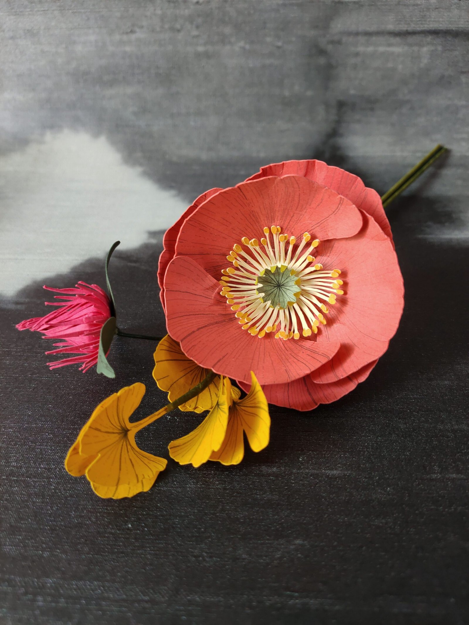 – Une mini fleur de pavot coloris CORAIL