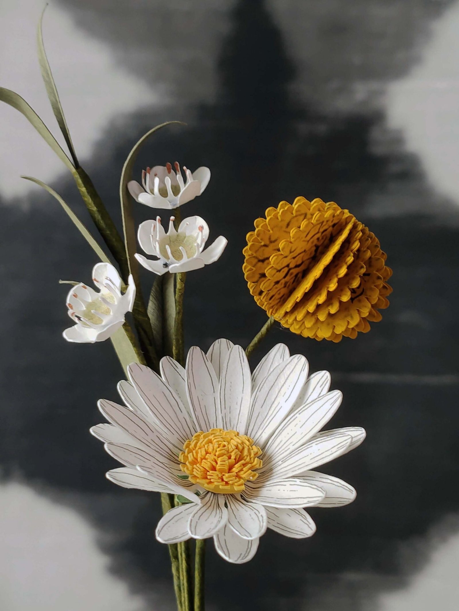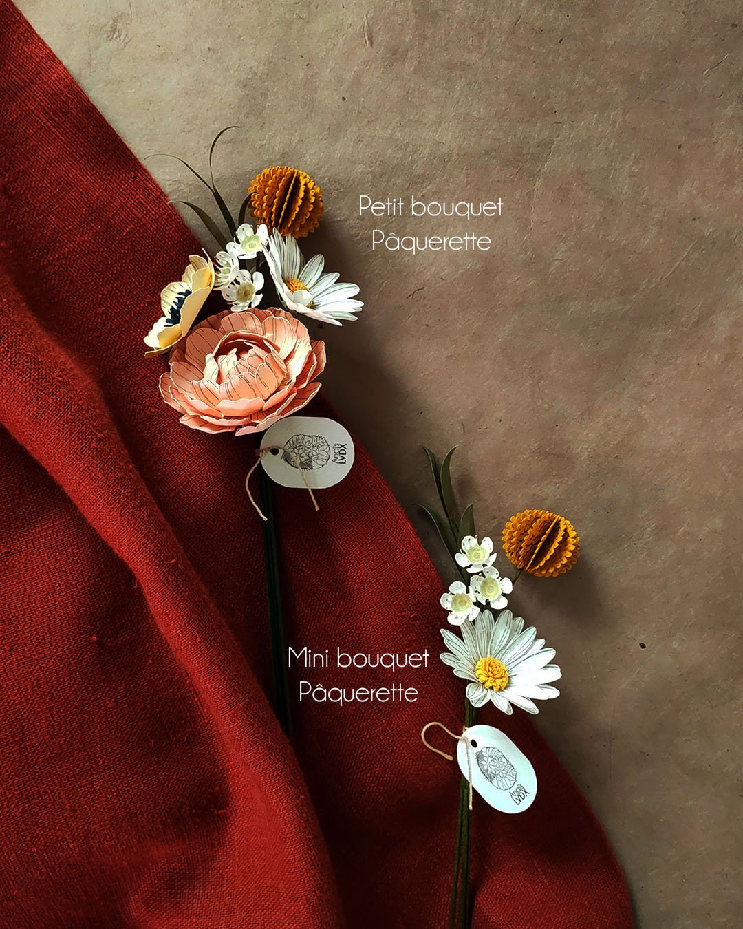 Chaque fleur / feuillage est unique, réalisé.e à la main dans mon atelier en Bretagne. Chaque fleur / feuillage est signé.e. Chaque dessin est préparé à la main, imprimé sur du papier d’art Canson, épaisseur 160 g. Celui-ci est teinté dans la masse, ce qui lui procure une excellente conservation dans le temps. Garanties de conservation : conforme à la norme ISO 9706, sans acide, ni azurants optiques. Traitement antifongique. Ensuite les éléments constituant la fleur / le feuillage sont découpés par une machine de découpe, pour une finition parfaite, assemblés par moi-même, une à une. Tous les modèles ont été conçus par mes soins.